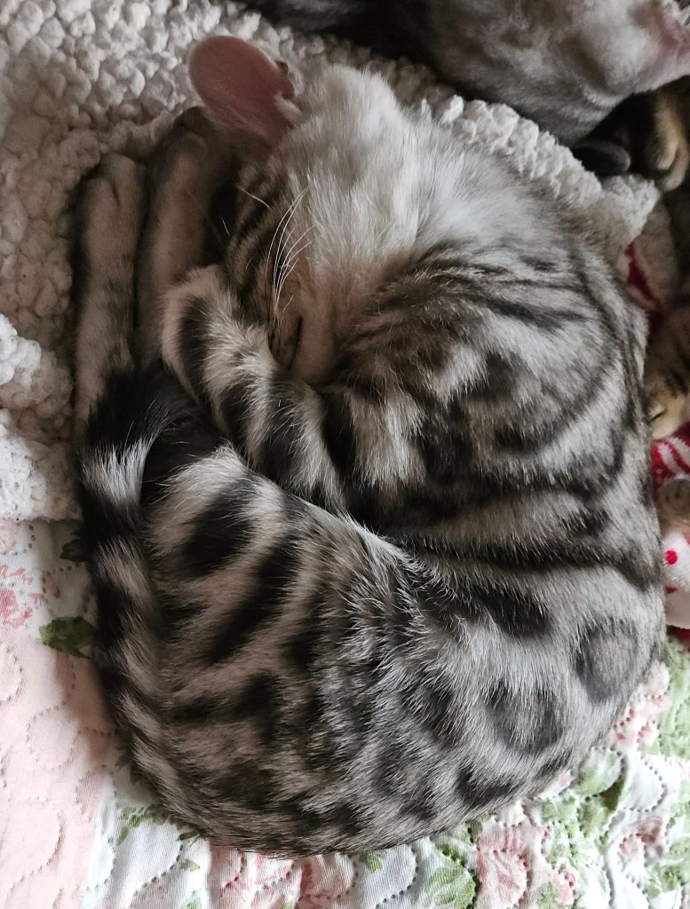 Les petits Yuga, Viking, Vénus, Vanille et Wendy sont issus de notre Umma de la Baie de Rosas et du bel Osiris de Marie Bengal, le petit Voyou est, quant-à-lui, le fils de l’élégante Tabou de Rosas Bengal et d’Osiris de Marie Bengal de chez Rosas Bengal.