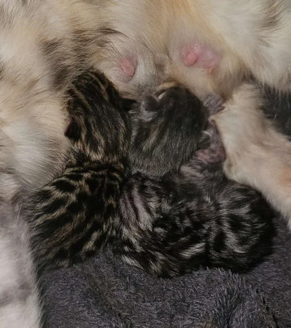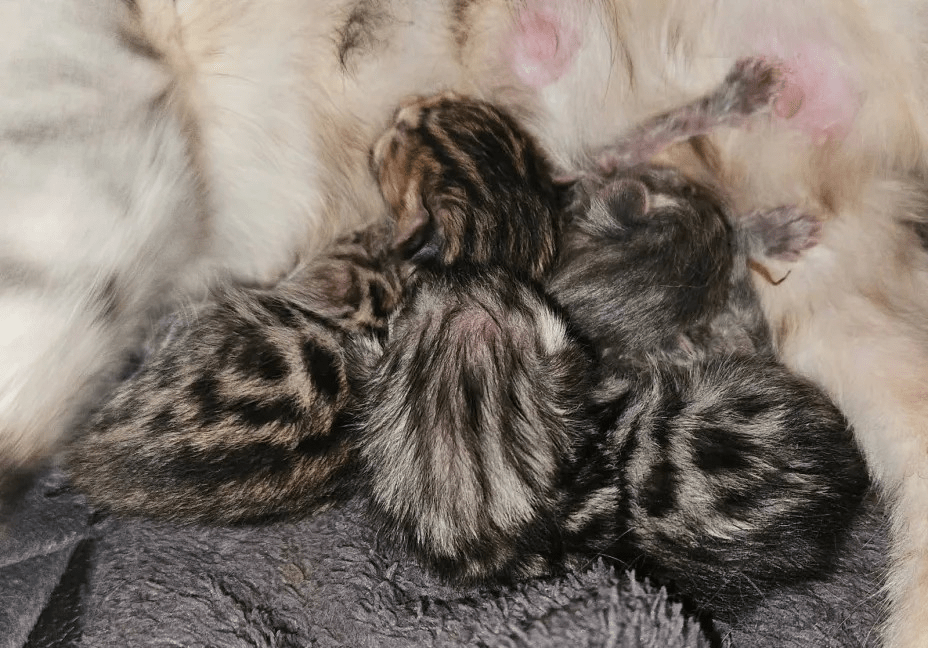 Tabou et Osiris ont la joie de vous annoncer l’arrivée de leurs 3 bébés, Tabou a en effet donné naissance à 3 magnifiques chatons pour la fête des mères.