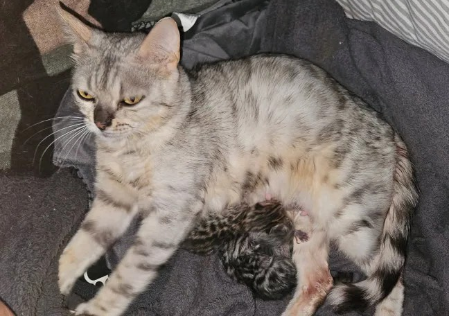 Tout le monde va bien et Tabou s’occupe de ses petits avec beaucoup d’amour et de ronrons !