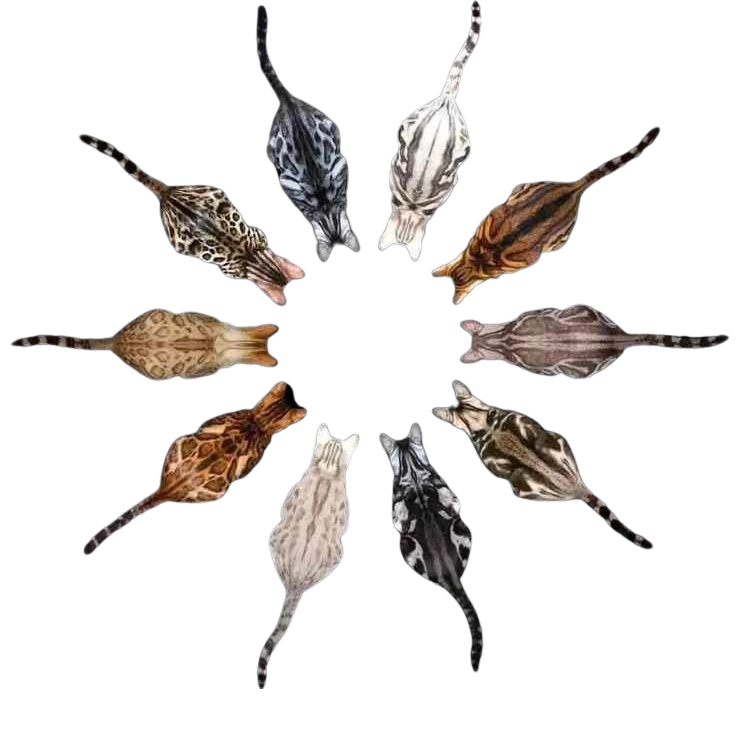 Sa queue est épaisse à la base et s’affine légèrement jusqu’à son extrémité, qui est de forme arrondie. La fourrure est épaisse, douce et soyeuse au toucher.